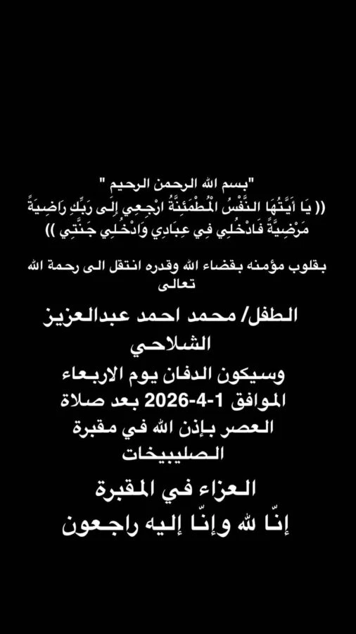 الطفل/ محمد احمد عبدالعزيز الشلاحي